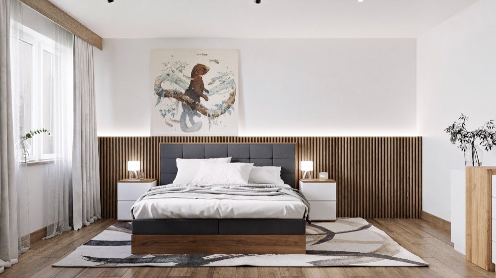 V současnosti oblíbená čalouněná čela postelí dotvářejí minimalistický look celé ložnice.