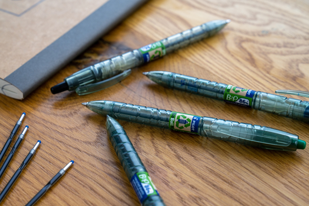 Pilot B2P Ecoball a Pilot B2P Gel jsou vyrobena z recyklovaných PET lahví, z nichž 2,5 % pochází z oceánských plastů. Dokonalé propojení designu a využití plastového odpadu podtrhuje i skutečnost, že z jedné PET lahve lze vyrobit až tři pera z kolekce B2P. Pilot tím ukazuje, že i malá gesta dokážou ve světovém měřítku velké věci! A vy i vaše kancelář se můžete stát součástí této zelené revoluce. Nejen že budete psát pery z recyklovaných materiálů, jednoduchou výměnou náplně prodloužíte i jejich životnost. Když vyměníte náplň pera Ecoball nebo B2P Gel alespoň třikrát, významně snížíte uhlíkovou stopu, a to až o 85 %!