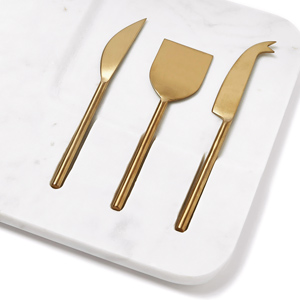 Foto: WestwingServírovací talíř na sýr Jaya (Westwing), tři nože na sýr, mramor, 48 × 22 cm, cena 1 549 Kč, www.westwing.cz