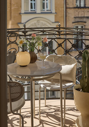 Oba balkony, i když mírně odlišné, spojuje lehkost tvarů nábytku Kumi, důraz na detaily a vytvoření útulné atmosféry ideální pro dlouhé květnové dny a večery.
