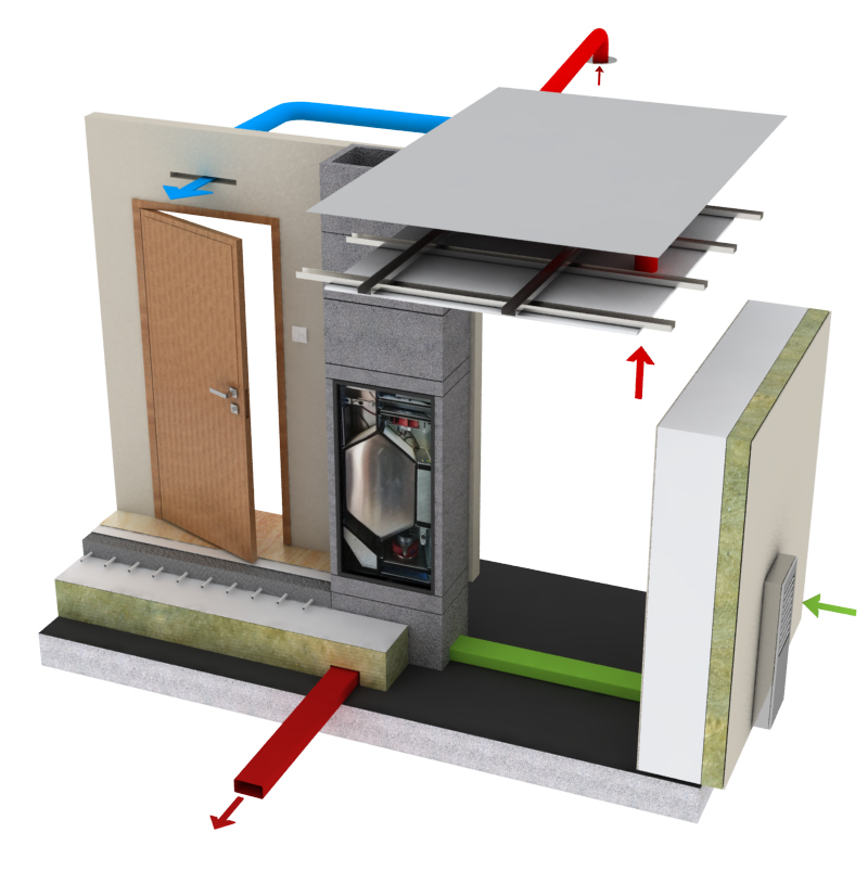 Další výhodou systému jsou kompaktnost a minimální nároky na prostor. Jednotka se umísťuje do modulu srovnatelného s velikost komínových systémů Schiedel a vejde se prakticky kamkoliv. Vysoká účinnost rekuperační jednotky je samozřejmostí.