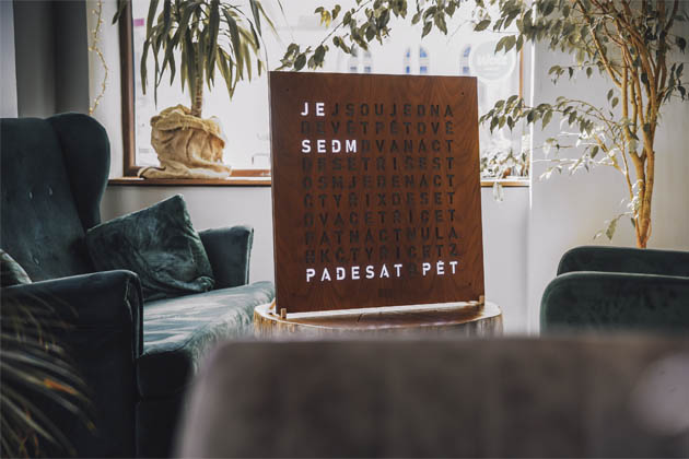 Primárně se mi líbí ten fakt, že hodiny jsou prostě hodiny. Ambientní osvětlení byla jedna z věcí, o které jsme přemýšleli, možná ještě přemýšlíme, ale k definitivnímu rozhodnutí jsme zatím nedospěli. Naše hodiny samozřejmě ukazují aktuální čas, ale také umí díky poutavému barevnému podsvícení vtisknout prostoru magický nádech. Máme i verzi, kde si zákazník může sám zvolit vlastní barvy podsvícení písmen. Náš první zákazník, vášnivý fanoušek Sparty, až ve chvíli, kdy jsem mu hodiny osobně přivezl, zjistil, že první dvě barvy jsou barvami jeho firmy, a druhé dvě v barvách Sparty. Byl nadšený. On sám si přál, aby bylo zřejmé, že jsou to první hodiny, proto mají na zadní straně vygravírovanou jedničku s nápisem „Vlastníte první kus z řady NOV“.