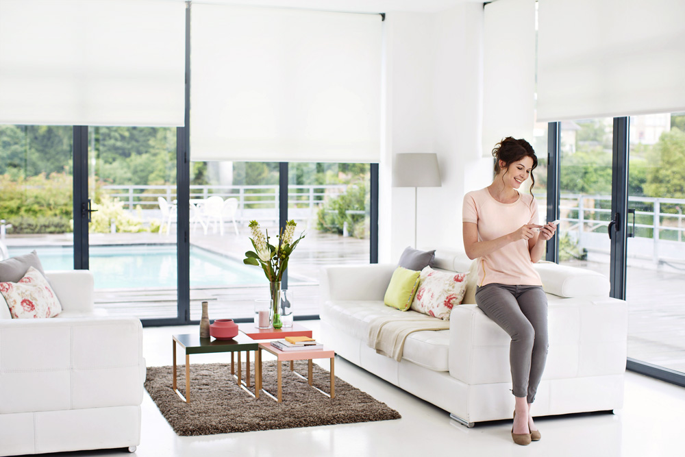 Díky motorizaci lze žaluzie i rolety v celém domě ovládat jediným tlačítkem. Buď pomocí nástěnného ovladače určeného pro jednotlivou konkrétní roletu, nebo dálkovým ovladačem.