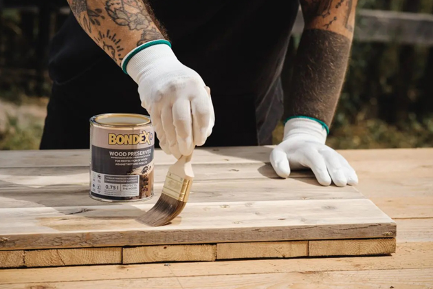 Napouštědlo Bondex Wood Preserver dobře promíchejte a nanášejte plochým štětcem v 1–2 vrstvách. Nátěr pronikne hluboko do struktury dřeva a dlouhodobě ho chrání před pronikáním vody, dřevokazným hmyzem, hnilobou i zamodráním. Nechte ho zaschnout alespoň 2 hodiny.