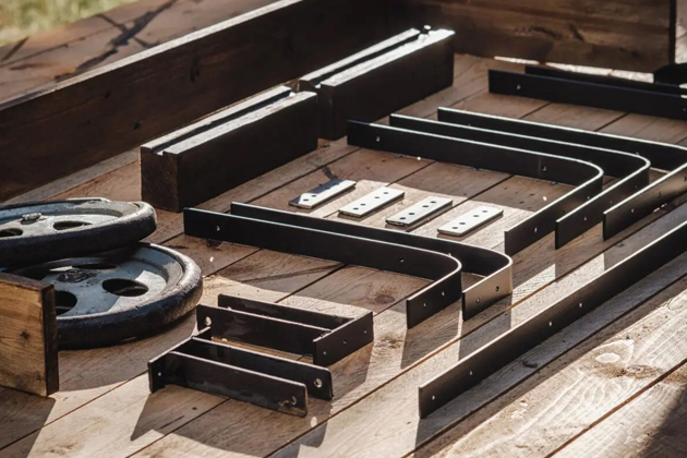 V první řadě si připravte sedm kovových profilů, které poslouží k uchycení dřevěných opěrek. „Ocelové pásoviny jsem si nařezal na požadovanou délku, ohnul je a vyvrtal do nich otvory pro šrouby. Podle potřeby můžete kov před dalším použitím ošetřit antikorozním nátěrem,“ radí Tomáš Milon.