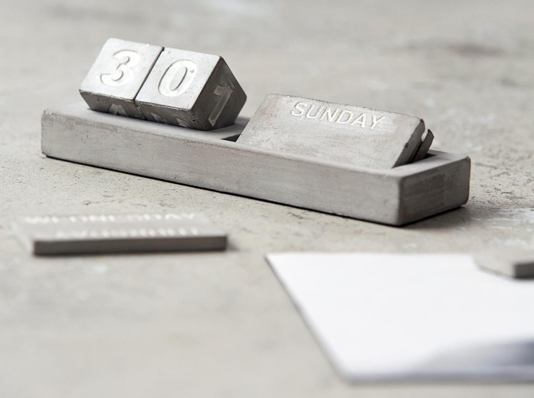 Pokud hledáte něco zábavného na váš pracovní stůl, vsaďte na betonový organizér či kalendář.