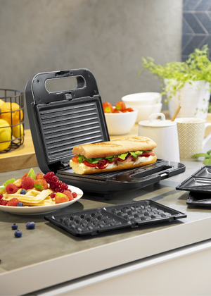 Foto: TescomaSendvičovač Prezident 3v1 (Tescoma), výměnné desky na vafle, panini, maso či ryby, cena 1 599 Kč, www.tescoma.cz