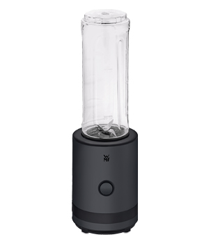 Foto: WMFStolní mixér Smoothie-to-go KITCHENminis (WMF), matně černá nerezová ocel, dvě nádoby s víčky, cena 2 149 Kč, www.wmf.cz