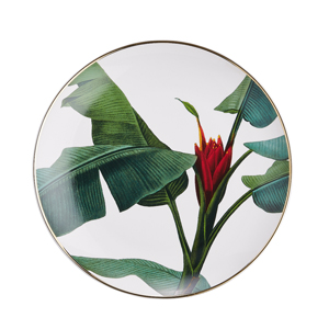 Talíř ze série Tropical se zlatým okrajem, porcelán, Ø 20,5 cm, cena 199 Kč, www.butlers.cz