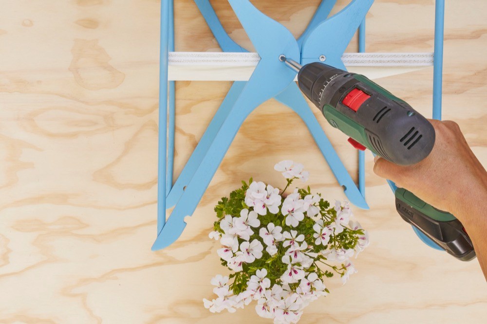 Jakmile barva zaschne, sestavte stolek pomocí šroubů a můžete klidně své drahé polovičce naservírovat snídani až do postele. Nezapomeňte na živou květinu, která váš den udělá hned hezčí. Zajímavou kombinaci představují květy Pelargonie v kombinaci s luční trávou.