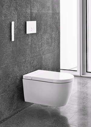 Klozet Starck Plus Compact (Duravit), povrchová úprava HygieneGlaze, elektronické bidetové sedátko, cena 67 985 Kč, www.sanitino.cz