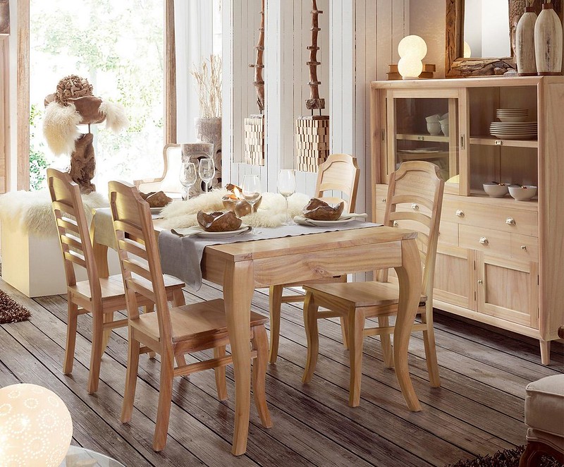 Na tomto pozadí vypadá nábytek z přírodního dřeva krásně, nejlépe ve vintage stylu - s odřeninami, kartáčováním, přirozenými stopami opotřebení.