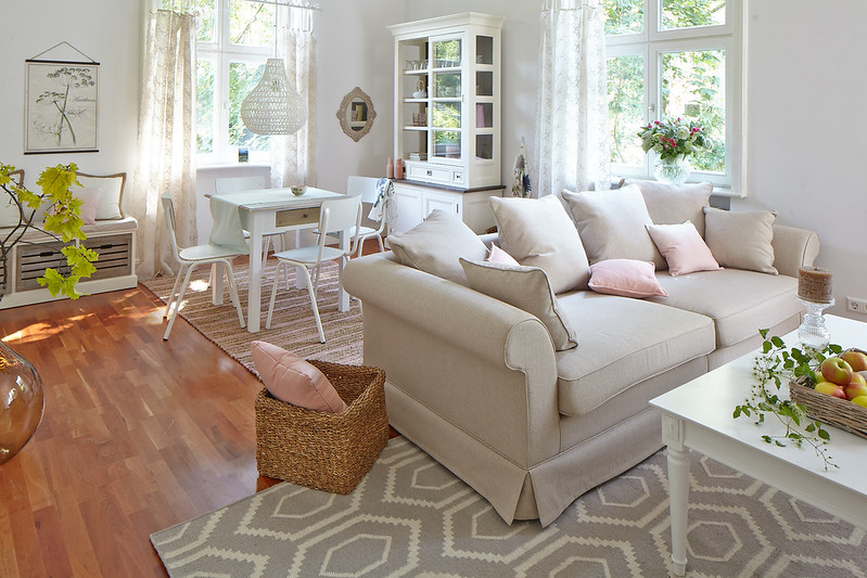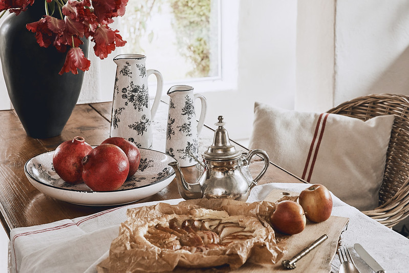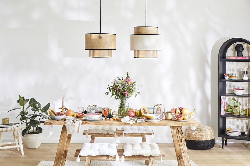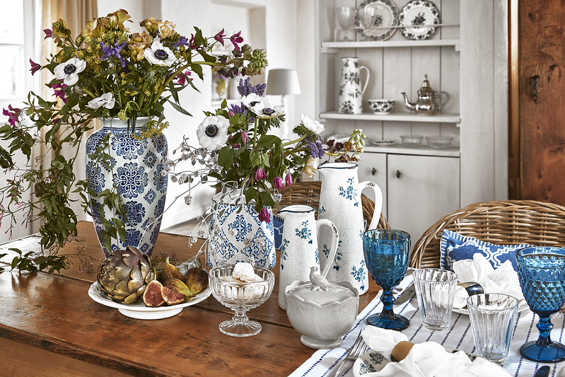 Textilu zase vévodí měkká plátna, bavlna a hedvábí, často s květinovým potiskem nebo pruhy. Celek je doplněn pečlivě vybranými doplňky: tkané koše, bohatě zdobený porcelán a všudypřítomné rostlinné a zvířecí motivy odkazující k idylickému venkovskému životu.