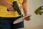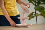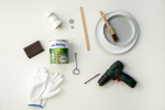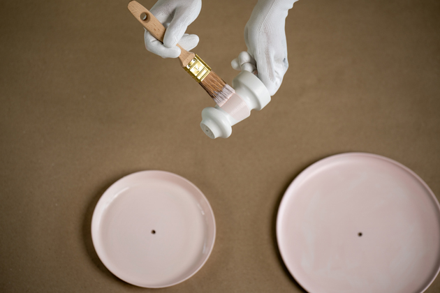 Krycí barvu důkladně promíchejte a talíře ze všech stran natřete. Doporučujeme zvolit svěží jarní odstín (např. jemně růžový PPG1053-2), ale vybírat můžete z barevné škály až 20 000 barev. Nátěr nanášejte plochým štětcem ve 2–3 vrstvách, mezi kterými nechte rozestup alespoň 2 hodiny. Vodou ředitelná krycí barva Balakryl UNI satin se snadno roztírá, výborně kryje, rychle schne, nezapáchá a vytvoří elegantně hladký saténový vzhled. Během schnutí jednotlivých vrstev pak do stejné barvy slaďte také dřevěné nábytkové nohy, které budou tvořit oporu pro jednotlivá patra etažéru.