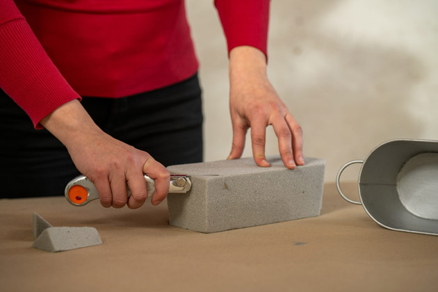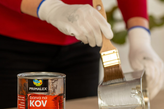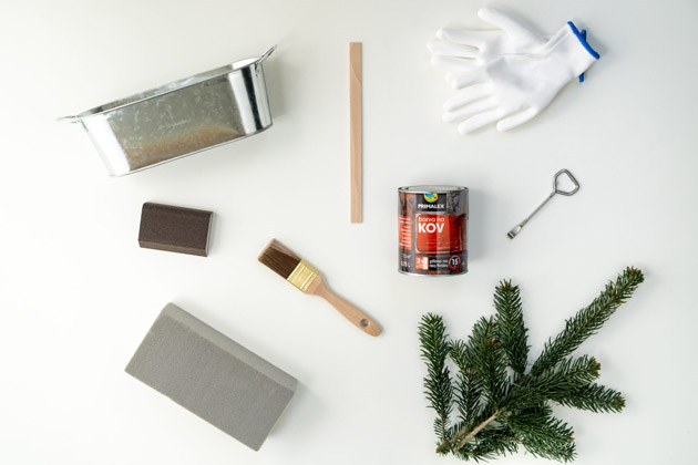 V první řadě se zaměřte na vzhled samotných truhlíků. Pokud už se na nich podepsala léta používání nebo se místy dokonce objevila rez, nezoufejte! Stačí, když jim dopřejete nový ochranný nátěr. Primalex Barva na kov 2v1 díky vysoké antikorozní ochraně prodlouží životnost kovových povrchů. Lze ji aplikovat přímo na rez bez použití základní barvy. Dále si připravte aranžovací hmotu, přírodniny (např. jehličnaté větve, borůvčí, šípky, mech či šišky), plochý štětec (vel. 1,5“), jemnou brusnou houbu a ochranné rukavice.