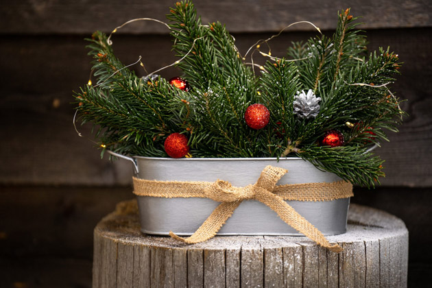 Truhlík dále rozveselte například větvičkami šípku, jeřabinami či šiškami, kterým můžete dodat efektní kovový vzhled použitím metalické barvy ve spreji. Adventní náladu podtrhnou vánoční ozdoby a dekorace. Připevněte je pomocí drátku nebo tavné pistole. Aby byl truhlík nepřehlédnutelný i po setmění, zavěste na větve drobná LED světýlka. Na závěr ho lze dozdobit jutovou stuhou.