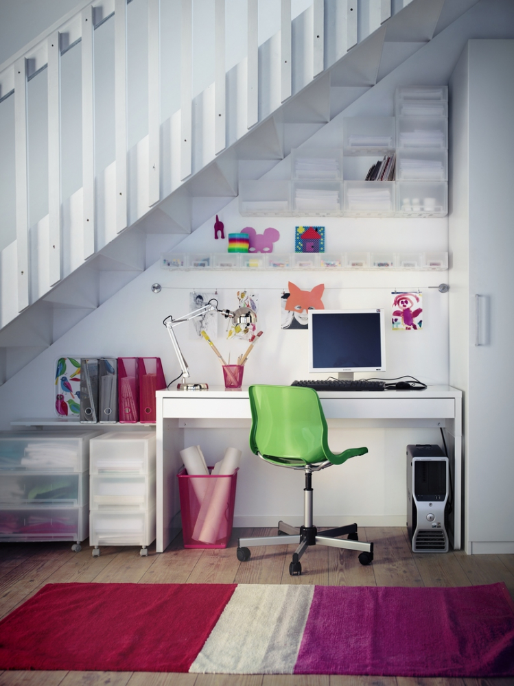 V rámci prostoru je dobré umístění někde stranou od veškerého dění. Pokud tuto možnost nemáte, prostor alespoň opticky oddělte, abyste dosáhli psychologického efektu oddělené části. K tomu lze využít různé předěly místností architektonickými prvky (částečné příčky, prosklené stěny, dřevěné lamely apod.) nebo méně náročnými způsoby, jako jsou stěny tvořené skříněmi, otevřenými policovými díly nebo jednoduše závěsy.