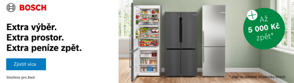 Aktuální akce: V období od 1. 6. do 31. 7. 2024 můžete při nákupu vybraných chladniček Bosch získat až 5 000 Kč zpět.