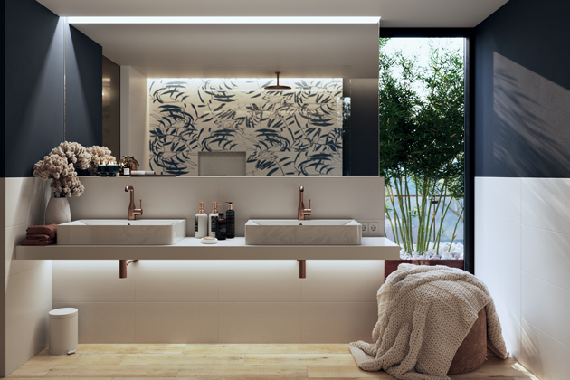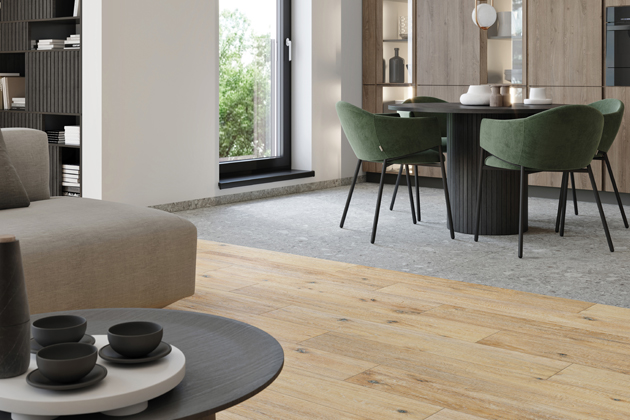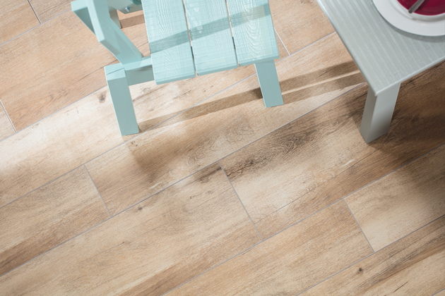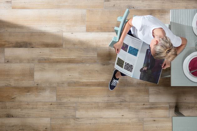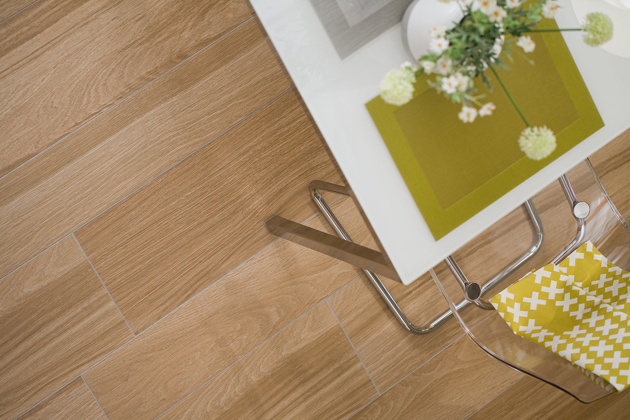 Při plánování podlah obkladů stěn v interiéru, nebo prvků v okolí domu, zůstává na zvážení jeden parametr a tím je vzhled – barva, dekor a formát dlaždic. „Je skvělé, když se dá do celého bytu použít podlaha ze stejného materiálu. Pokud majitelé chtějí v obytné místnosti chodit bosi, volí pod dlaždice podlahové vytápění. Výhodou je, že keramické série nabízejí škálu kvalitních dřevo dekorů, ze kterých lze vybírat,“ doplňuje Marek Vráblík. Rektifikované dlaždice (většinou s rozměry 20 x 120, 30 x 120, 20 x 80 cm) dovolují kreativní pokládku a vzájemné kombinování. Není problém bezbariérově propojit interiér v jednotném designu se stavbami okolo domu pomocí venkovních dlaždic o tloušťce 2 cm pokládaných na terče. Díky jemnému reliéfu a protiskluznému povrchu R11/B jsou určené pro celou řadu zahradních prvků a venkovních menších staveb – pro nové i rekonstruované terasy, balkony, plochy okolo bazénu, venkovní kuchyni. Hodí se i na nášlapné chodníky zakomponované do trávníku.