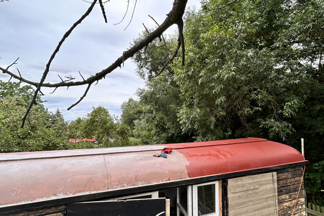 Co všechno vlastně rekonstrukce maringotky a podobných příbytků obnáší? V první řadě je důležité opravit střešní krytinu. Na plechovou střechu maringotky majitel použil antikorozní vodou ředitelnou barvu Balakryl Metal 2v1, která spojuje vlastnosti základního i vrchního nátěru. Střechu ochrání před korozí i povětrnostními vlivy a prodlouží tak její životnost. Barva se nanáší neředěná na povrch očištěný od rzi, nepřilnavých nátěrů a jiných nečistot. Pro dosažení nejvyšší antikorozní ochrany doporučujeme aplikovat 2–3 vrstvy s odstupem 4 hodin.