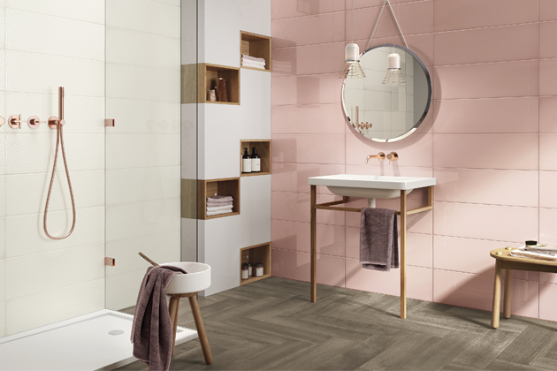 Keramický obklad stěn Lavender (Imola Glass), formát 20 × 60 cm, cena 598 Kč/m2, www.koupelny-ptacek.cz