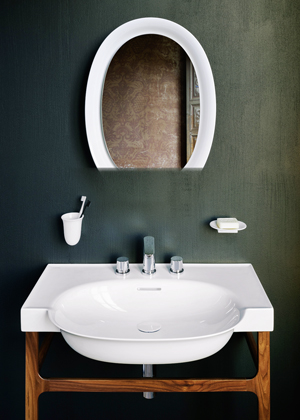 Umyvadlo Džber (Jika), produktová řada Jika Art, dekorativní ucho vhodné na zavěšení ručníku, cena 10 430 Kč, www.jika.cz