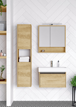 Koupelnová skříňka pod umyvadlo Quickset (Pelipal), 65 × 60,5 × 33 cm, dřevotříska, světlý dub, cena 3 660 Kč, www.hornbach.cz