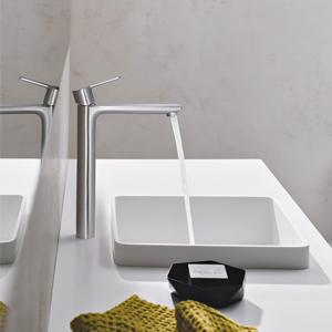 Umyvadlová baterie z řady Lineare (Grohe), odolný povrch SuperSteel, cena 16 151 Kč, www.grohe.cz