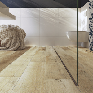 Dlažba Saloon (Rako), dekor imitace světlého dřeva, formát dlaždice 20 × 80 cm, cena 1 026 Kč/m2, www.rako.cz