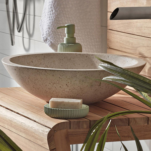 Umyvadlo na desku Terazzo (Kuveni), Ø 40 cm, výška 11 cm, v nabídce též černé provedení, cena 3 249 Kč, www.westwing.cz