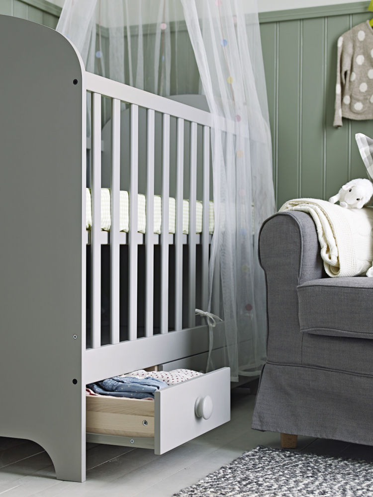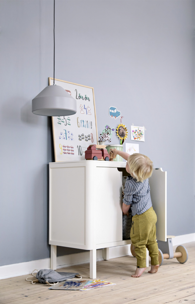 Kromě postýlky nebo postele patří do dětského pokoje skříň, případně komoda na oblečení a úložné prostory na hračky. Většina dětí dělá spíš nepořádek a vytahuje oblečení a hračky na jednu hromadu, což je normální, ale zároveň je na čase je začít postupně učit vše ukládat na své místo. Skvělým pomocníkem k ukládání oblečení mohou být obrázky jednotlivých kusů oblečení nalepené na zásuvkách.