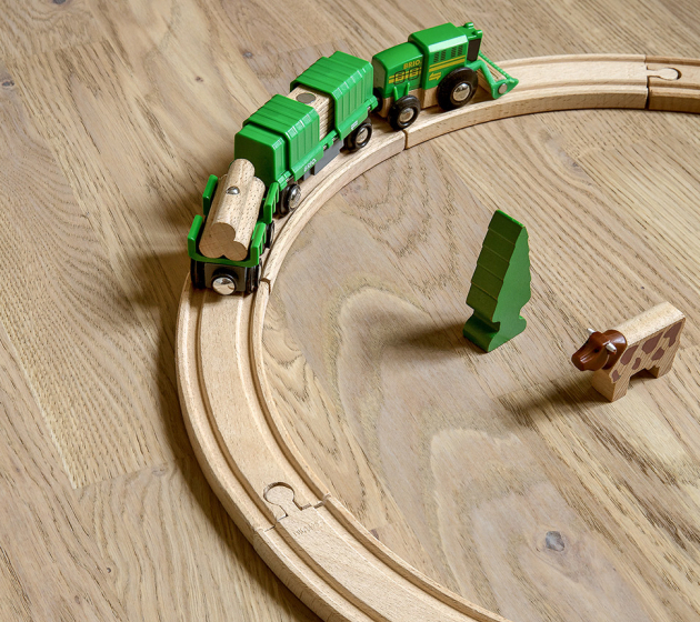 Vzhledem k tomu, že batole nejvíce času tráví na podlaze, měla by být teplá, měkká, samozřejmě čistá a ideálně odolná vůči pastelkám nebo rozlitému čaji. Hřejivou podlahu zajistí podlahové topení, ale pokud ho nemáte, skvělou volbou jsou vinylové podlahy, které nestudí a jsou příjemné a měkké na došlap, tedy ideální pro bosé dětské nožky a kolena, nebo přírodní podlahová krytina Marmoleum.