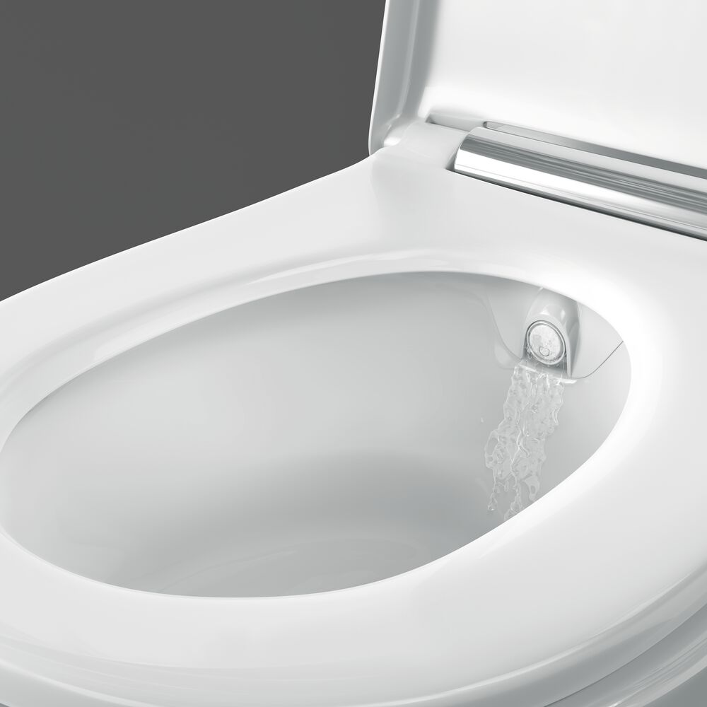 Každé sprchovací WC má rameno s tryskou ukryté v dobře chráněné poloze. Sprchovací tryska se vždy před a po sprchování automaticky opláchne vodou. Zůstává tak stále skutečně čistá a připravená pro další použití.