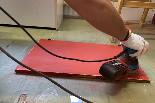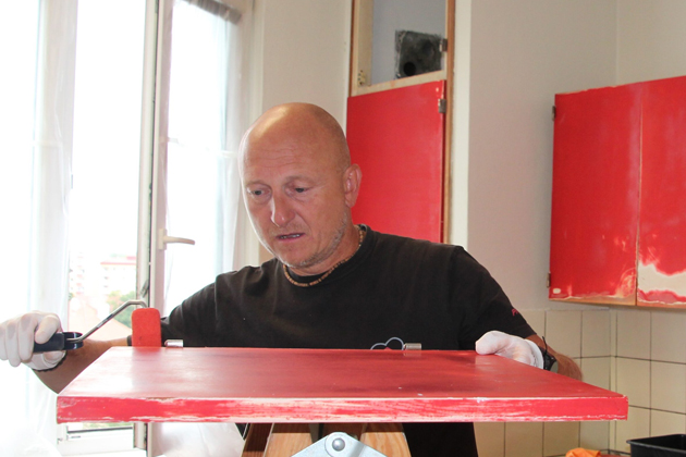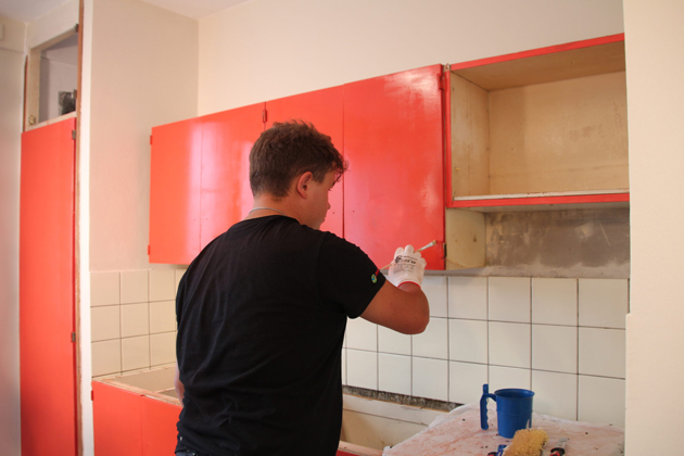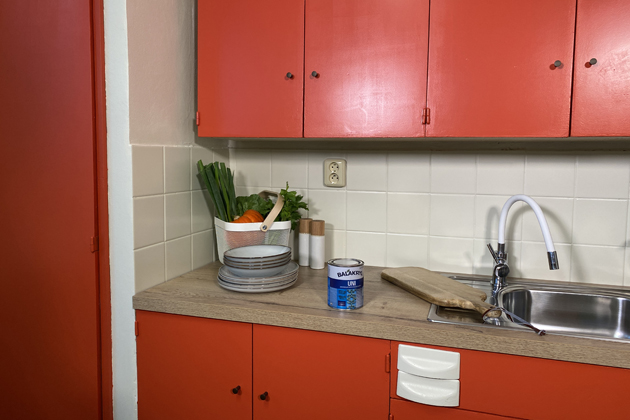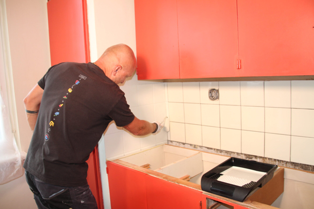 Zbroušená místa a nerovné plochy vyplňte akrylátovým tmelem, který aplikujte v 1–2 vrstvách do tloušťky 1–3 mm. Po jeho vytvrdnutí povrch zahlaďte brusným papírem. Univerzální krycí barvu Balakryl UNI důkladně rozmíchejte a nanášejte pomocí štětce nebo malého válečku ve 2 vrstvách, mezi kterými nechte rozestup asi 4 hodiny. „Tento vodou ředitelný nátěr výborně kryje, nezapáchá a rychle schne. Má navíc atest pro styk s potravinami, do kuchyně je proto ideální volbou,“ dodává Radek Kříž.