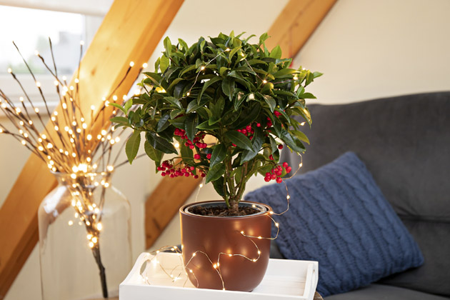 Okrasnému stálezelenému keříku s hustými lesklými listy se zvlněným okrajem a úžasnými korálově až šarlatově červenými bobulemi se říká také korálový keř, cesmína australská nebo vánoční bobule. Právě bobule ho promění v úchvatnou „nazdobenou“ krásu doslova ideální pro adventní období. Pokud keřík „dotuníte“ světýlky, neotřelá vánoční dekorace je na světě. Předtím, než se objeví zmiňované jasně červené plody, které na ní zůstávají po celý rok, vytváří shluky bílých nebo načervenalých voňavých květů, které kvetou od konce jara do začátku léta. Klíman bude dobře prospívat na jasném nepřímém světle. Pozor na průvan a přímé slunce, které by mohlo spálit listy a způsobit scvrknutí bobulí. Bobule se mohou začít scvrkávat i ve chvíli, kdy má klíman nedostatek vody. Vyhovuje mu rovnoměrná pokojová teplota a pravidelné zamlžování listů vlažnou vodou.