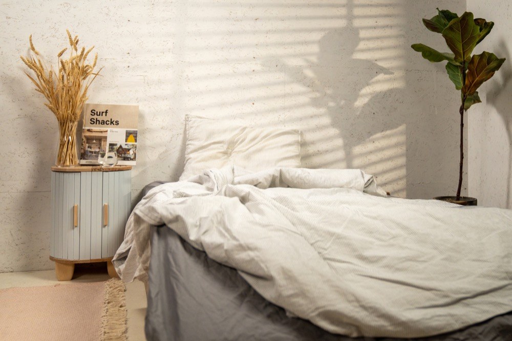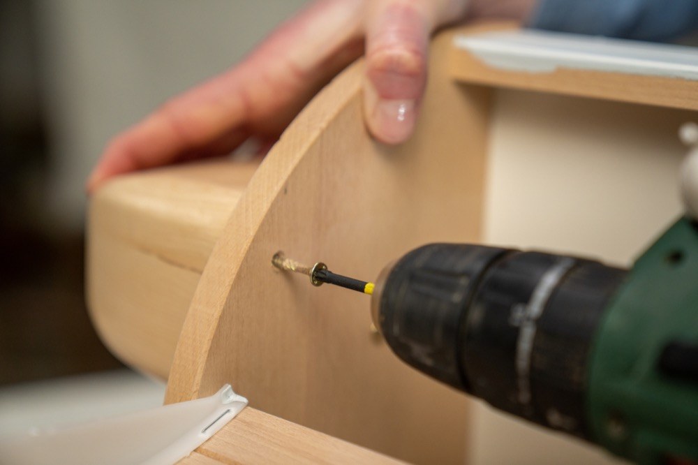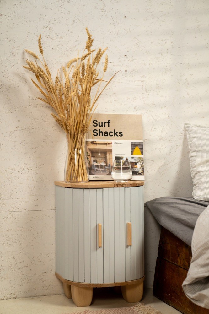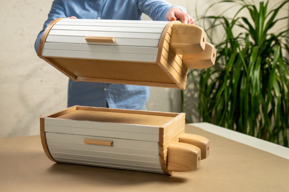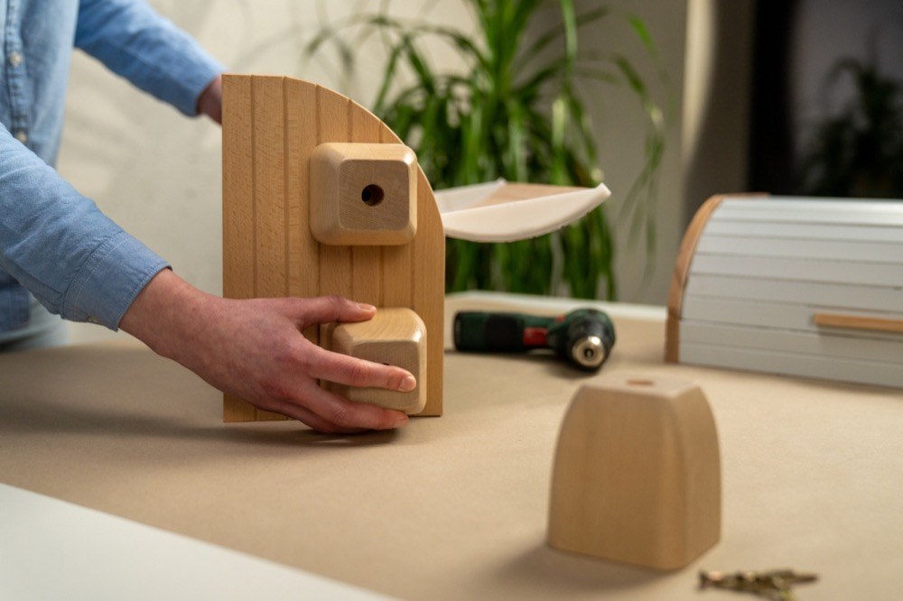 Jakmile budou všechny vrstvy nátěrů suché, můžete se pustit do sestavení stolku. Nábytkové nohy přišroubujte po dvou na boční stranu obou chlebníků. Pomocí malířského štětce naneste lepidlo na dřevo po celém obvodu zadní stěny prvního chlebníku a druhý na něj opatrně položte. Až lepidlo zcela zaschne, můžete noční stolek postavit nohami na zem. Na jeho horní desku lze odkládat knihy nebo postavit stolní lampičku či květináč. Vnitřek zase poslouží k ukládání drobných kusů oblečení, knih, kosmetiky i dalších nezbytností.