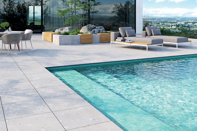 Povrch ABS poskytuje dlaždicím Castone ve čtvercových formátech 80 × 80 a 60 × 60 cm nejen vysokou odolnost a trvanlivost, ale i bezpečný protiskluzový efekt.