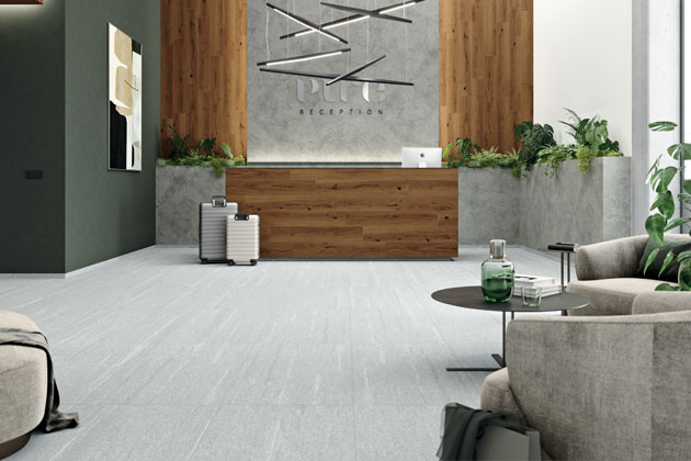 Dlaždice Vals jsou dostupné ve třech sofistikovaných šedých odstínech (fog, natural, pepper), které podtrhují přirozenou barevnost kamene s povrchem ABS (protiskluznost R10/B). Ať už hledáte vhodný materiál pro velké komerční plochy, nebo chcete oživit malou koupelnu v kombinaci s obkládačkami Compila, dlaždice Vals jsou ideální volbou pro každý prostor.