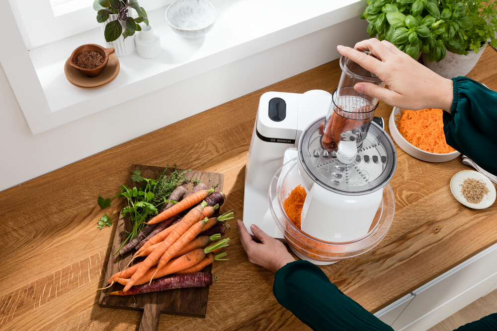 Robot Bosch MUM Serie | 2 je všestranným a prostorově nenáročným pomocníkem, který najde své místo i v té nejmenší kuchyni. Díky silnému motoru, širokému spektru příslušenství a jedinečné technologii míchání zaručí vždy perfektní výkon. Od 15. října navíc probíhá speciální akce, v rámci které získáte při nákupu těchto robotů až 700 Kč zpět. Nově jsou k dispozici i dva modely s odolnou tritanovou mísou.