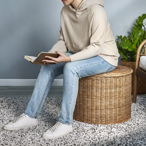 Taburet Tolkning (IKEA) s úložným prostorem, ručně vyrobený, ratan, cena 1 990 Kč, www.ikea.cz