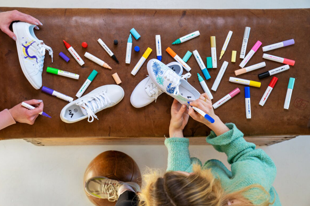 Ani váš šatník a botník neodolají náporu barev popisovačů Pilot Pintor. Pokud se zaměříte na zdobení svého outfitu od podlahy, popisovače zvládnou zkrášlit jak textilní, tak kožené části obuvi. Před použitím opět nezapomeňte popisovač důkladně protřepat a hrot několikrát stlačit na papíru, aby správně nasákl inkoustem. Vysoce odolné barvy jsou rychleschnoucí a jejich zářivé odstíny lze dokonce i míchat. Na textilie je ale nanášejte v jedné tenké vrstvě, protože inkoust se snadno vsákne a lehce proniká vlákny tkaniny, na kůži naopak můžete použít vrstvy dvě. Odolný hrot můžete zvolit ze dvou velikostí – tenký hrot s šíří stopy 2,9 mm a střední hrot s šíří stopy 4,5 mm. Budete-li chtít svůj výtvor na tkanině zafixovat, zažehlete obrázek přes látku při nízké teplotě bez napařování. Pro fixaci barvy na koženém povrchu použijte horký vzduch třeba pomocí fénu. Doporučená MOC je od 70,00 Kč/ ks.