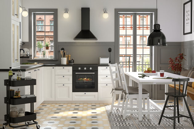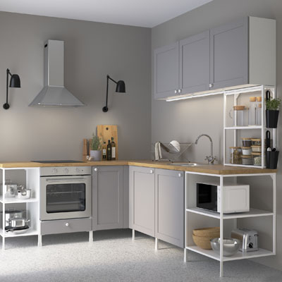 Foto: IkeaKuchyň Enhet (Ikea), světle šedý odstín s bílými prvky vytváří decentní a nadčasovou kompozici, www.ikea.cz