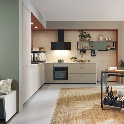 Neutrální béžová nebo světle šedivá barva bez výraznějších doplňků může na nábytku působit fádně. I z nudného základu lze ale vytvořit celek, který bude vypadat stylově i luxusně. Kromě osvědčených dřevěných nebo černých doplňků to můžou zajistit například bílé prvky nebo provedení „tón v tónu“, u kterého se využívá efektu kombinace stejných barev v různých odstínech. Kromě nábytkových prvků lze k doladění využít i barevnou kuchyňskou baterii nebo spotřebič.