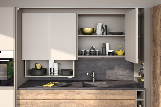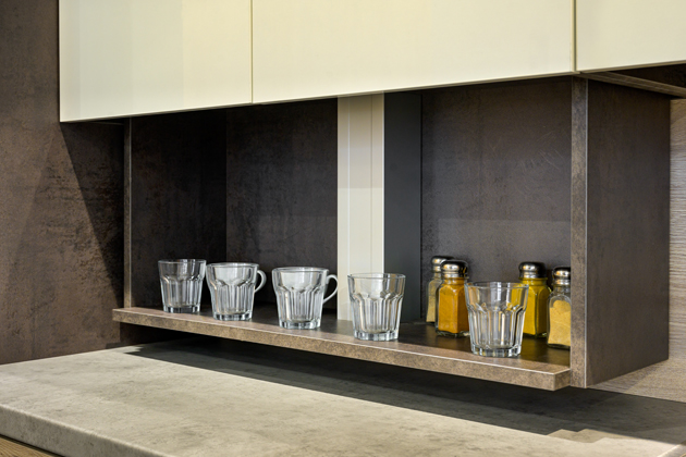 Problém může vyřešit polohovatelný systémy značky Hettich, který je vynikajícím pomocníkem pro osoby odkázané na invalidní vozík, skvěle se ale osvědčuje například v domácnosti partnerů s větším výškovým rozdílem nebo v rodině s malými dětmi. Jde o polohovací systém LegaMove umožňující svislý pohyb korpusu skříňky po délce až 489 mm, který oceňují také osoby menšího vzrůstu, jimž dovolí lépe využít horní skříňky bez použití stupínků. Po stisknutí tlačítka vysoko umístěný úložný prostor jednoduše sjede do požadované polohy, která je pro obsluhu konkrétního uživatele optimální. Ovladač může být drátový i bezdrátový a dá se umístit do takové polohy, aby byl všem k dispozici. Zařízení není viditelné a zavřená skříňka má stejný design jako obyčejný nábytek. Mechanismus disponuje i chytrými senzory, které pohyb zabrzdí, když se objeví nějaká překážka. Pokud tedy pod mobilní skříňkou leží například zapomenutá sklenice, tak ji nerozbije. Systém LegaMove má zvedací sílu až 40 kg, takže se dá využít i do úložných prostor s těžšími kusy nádobí
