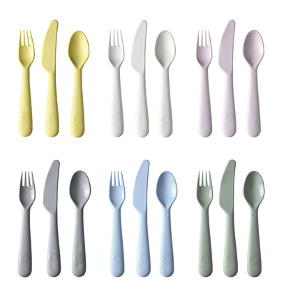 Dětský příbor Kalas (IKEA), polypropylenový plast, 18dílná sada, čtyři barvy, cena 49 Kč, www.ikea.cz