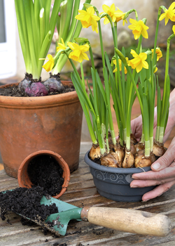 Koncem září nebo začátkem října je znovu vysaďte do květináčů s dobře propustnou zeminou. Cibulky vysazujte do hloubky odpovídající alespoň dvojnásobku jejich výšky.