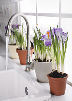 Jedny z prvních jarních květin, které jsou považovány za symbol mládí a lásky, potěší svými něžnými květy v bílé, modré, fialové nebo žluté barvě.Dorůstají do výšky 10 až 20 centimetrů. Krokusy jsou milovníky světla, najděte jim proto místo na parapetu okna ideálně směřovaného na jih.
