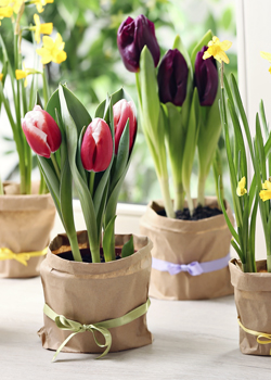 Jarní klasika. Tulipány v květináči vnesou do interiéru svěží a optimistickou atmosféru. Vybírat můžete z široké palety tvarů a barev od jemných pastelových odstínů až po výrazné a syté. Máte-li dostatečně velký květináč či jinou