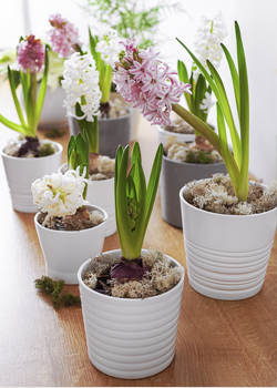 Okouzlující symfonie vůně a barev. Hyacinty uchvátí nezaměnitelnou intenzivní vůní. Květy se pyšní širokou paletou barev od sněhobílé přes něžně růžové až po sytou fialovou. Efektní možnost pěstování v gelu nebo ve vodě umožňuje pozorovat fascinující vývoj kořenového systému.