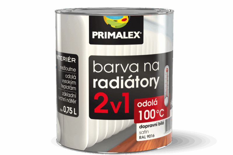 Primalex Barva na radiátory 2v1 je určena nejen k nátěrům radiátorů, ale také teplovodních vedení a ohřívačů vody. „Tento bílý nátěr na povrch krásně přilne a odolá i vysokým teplotám až do 100 °C, aniž by časem zežloutl. Navíc ho lze aplikovat přímo na kov bez použití základního nátěru,“ vysvětluje Radek Kříž, technický poradce značky Primalex.